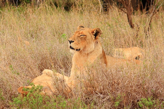 position in amongst a large thicket of Mopane Shrub. It was the pups
